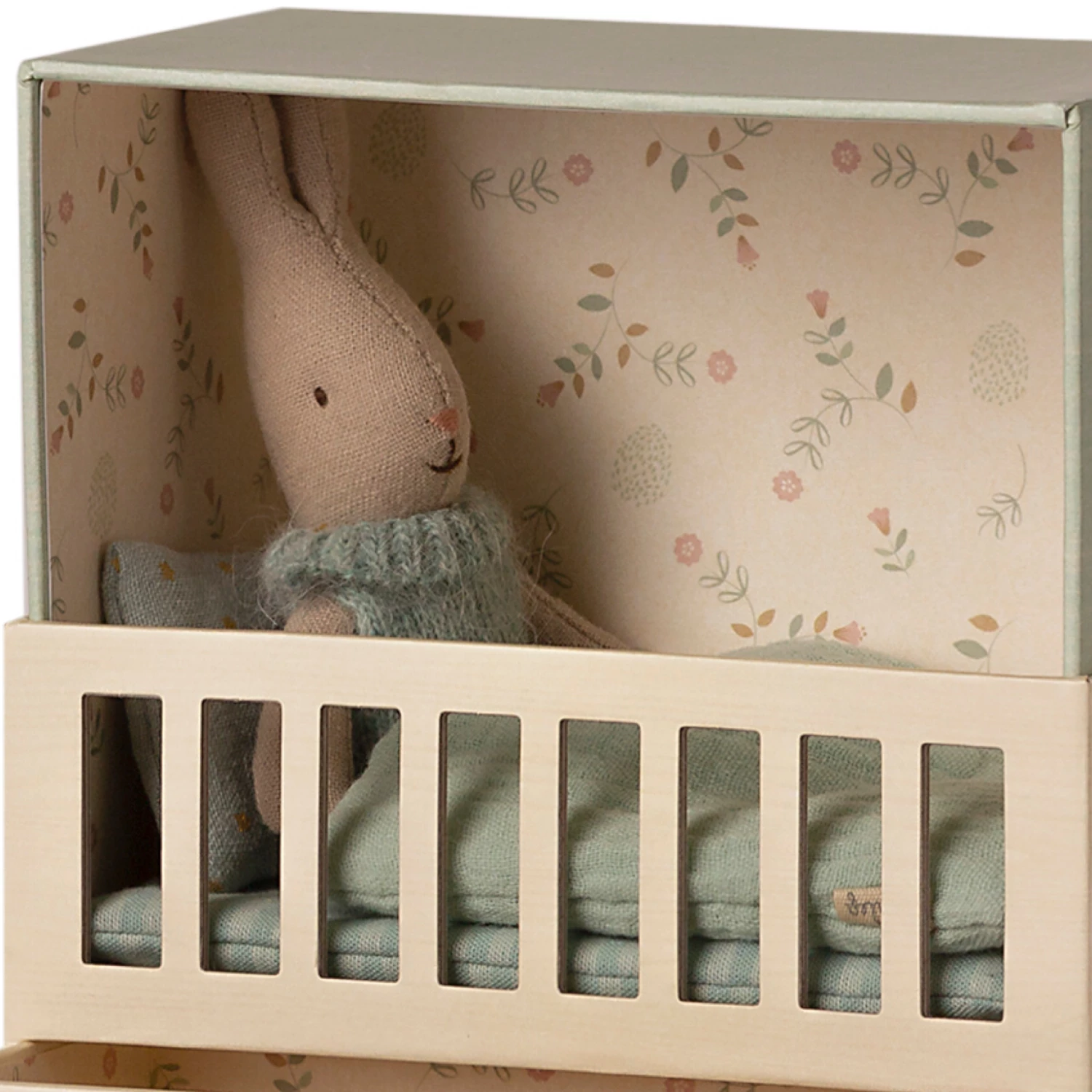 This sweet playful set contains a micro bunny, baby room box, baby suit, ball and a baby bottle. Everything you need for the perfect play and story telling about a baby. A perfect gift for a little person who is about to become a big brother or sister.