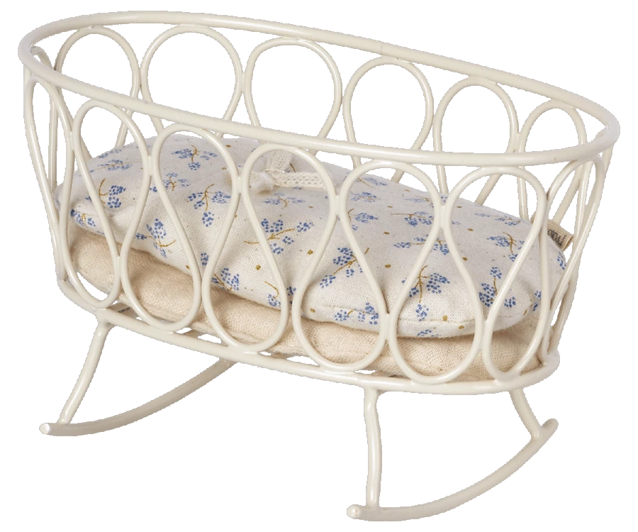 Un berceau en métal magnifiquement conçu avec un sac de couchage moelleux et un matelas à l’intérieur. Le berceau a des pieds arrondis, de sorte que vous pouvez facilement endormir vos petits amis doux.