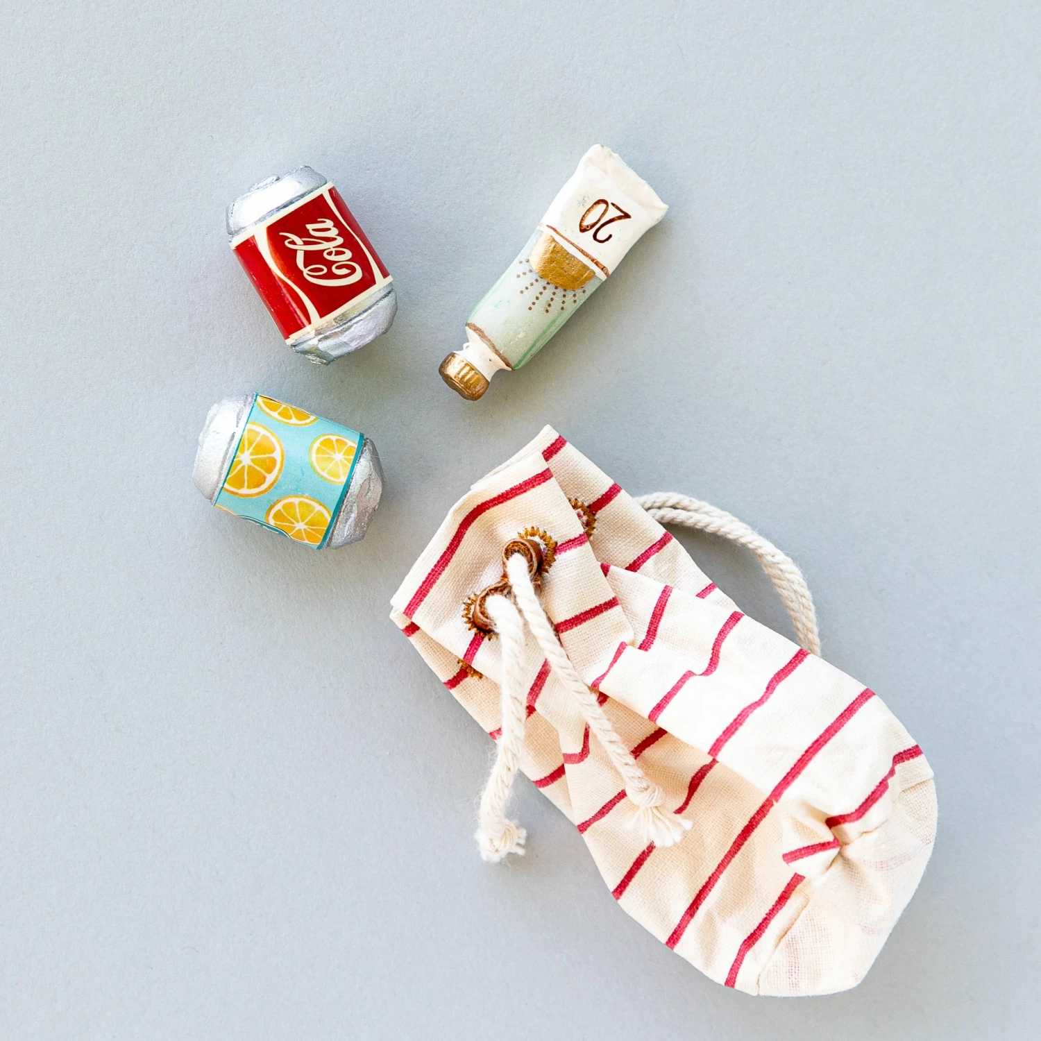 La nueva colección de verano de Maileg es encantadora. Tienen todos los detalles para disfrutar de un maravilloso día de playa. Por eso no podía faltar la bolsa de playa de material impermeable que contiene dos refrescos y crema protectora de 20. Así la familia se protegen del sol y refrescan.