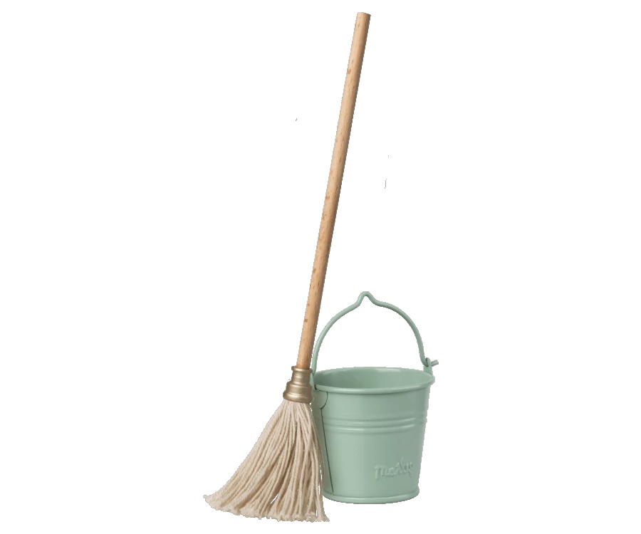 Maileg buddies need a bucket and mop to clean up those messes they make. This bucket and mop is perfect for MINI sized Maileg friends. Height: 23 cm Width: 6 cm Age: +3 Year Wash: Surface wash Material: Metal