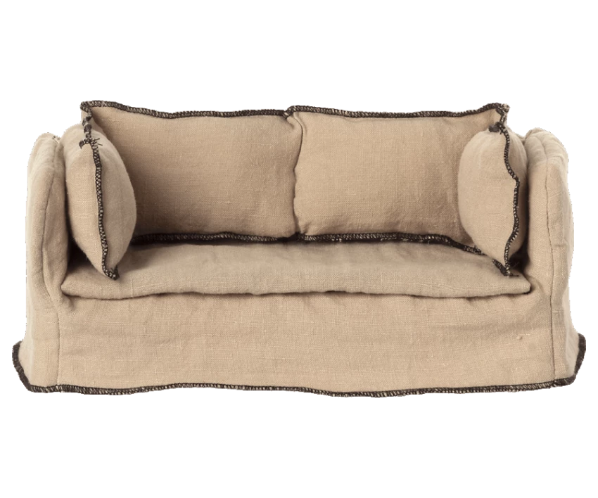 Faites une pause sur ce joli canapé. Le canapé miniature en bois est recouvert par un tissus souple en lin. Il s’intègre parfaitement à la maison de souris maileg.
