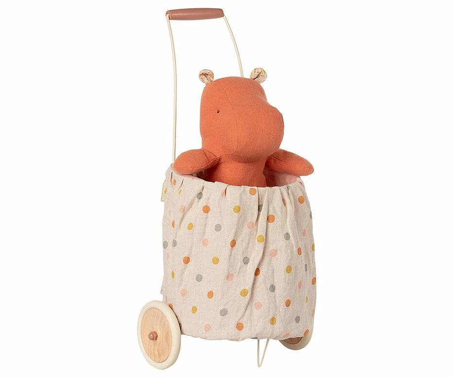 Chariot en lin enduit pour transporter tous ses jouets. Le tissu se détache pour être facilement lavé.