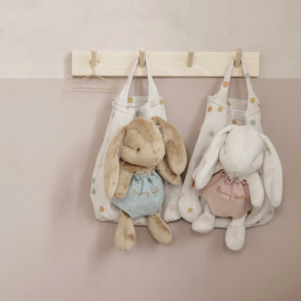 Coniglio Bob con borsetta Dettagli: materiale: lino e poliestere dimensioni: altezza 25 cm marca: Maileg