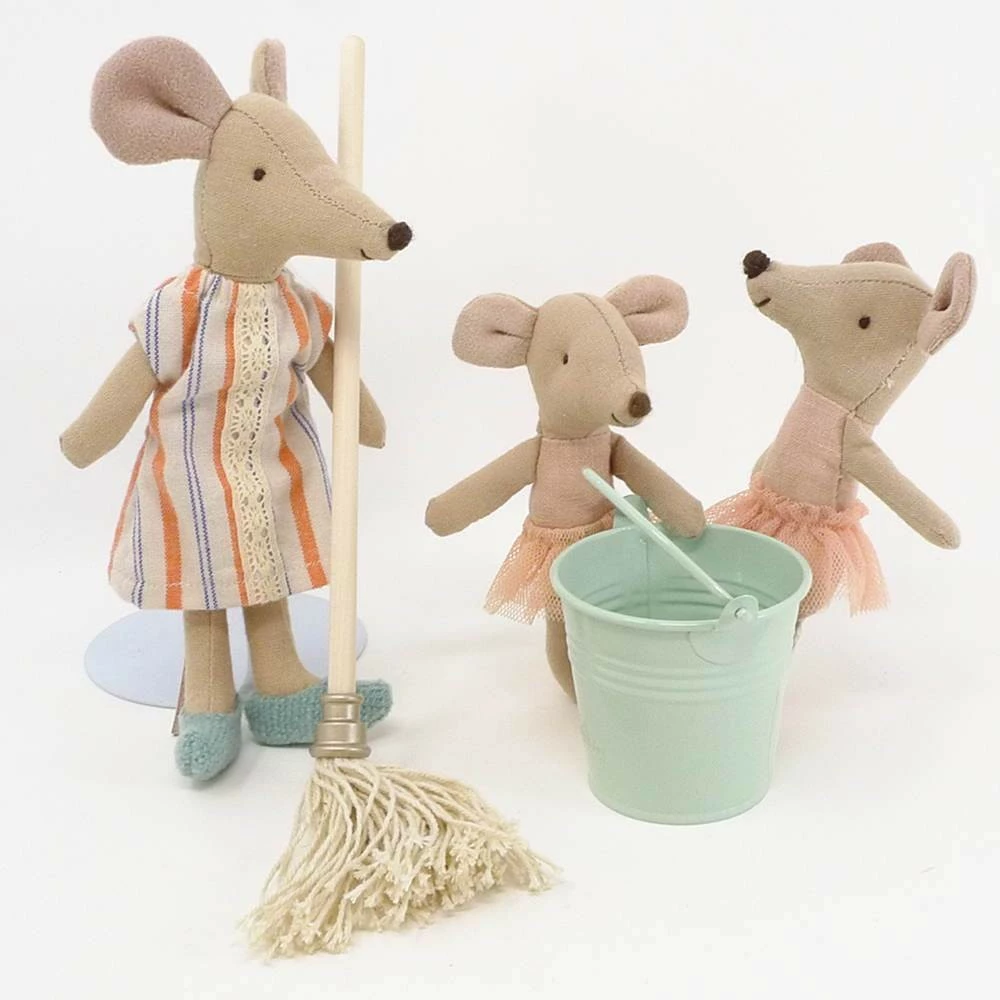 Los amigos de Maileg necesitan un balde y una fregona para limpiar su casita.