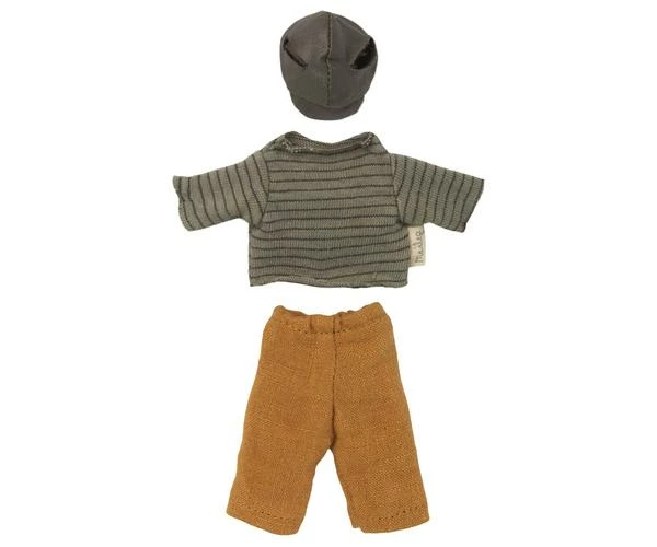 Size : Big sister / Big brother mouse Height : 15 cm Age: 3 years & up Washing instruction: 30 degrees Material: Cotton / Polyester Wonderful Dad mouse by Maileg wears his stylish hat and striped shirt.