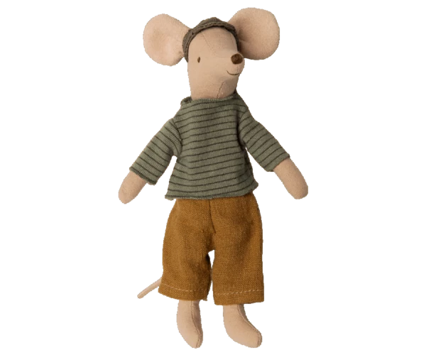 Maileg is a multi award-winning Danish design company which makes unique quality, long-lasting, charming products, which merge modern Scandinavian design with storybook whimsy and meticulous attention to detail. Maileg offers a world where matchboxes are beds for mice, adored by both adults and children, cherished and often passed on from generation to generation. Casual Dad mouse in striped soft sweater and casual pants. They make a wonderful gift. Height : 15 cm Suitable for all ages Washing instruction: 30 degrees Material: Cotton Age: 3+ Brand Maileg