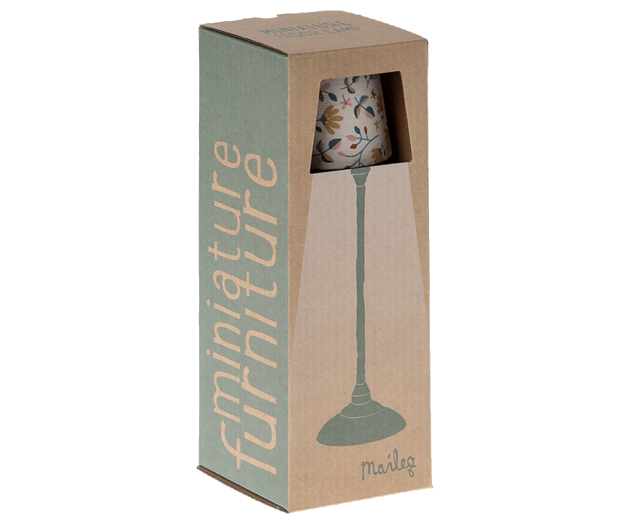 Our beautiful Maileg Miniature Floor lamp is a must have. The lamp will light up the room with a soft tone – remember to turn off the light when our friends go to bed . The battery can be changed by an adult and is not rechargeable.Type C1632 3 V. Product details Height: 22 cm Width: 7 cm Age: 3 YR + Wash: Surface wash Material: Metal/Cotton Maileg (pronounced My’lye) is a brand of charming Danish-designed toys created to inspire our children’s favourite playtime stories. By bringing storybook whimsy to everyday moments, Maileg toys help children explore the pure and simple wonder of imagination. Beloved for their heartwarming personalities, Maileg toys show playfulness and charm in every last detail. Theirs is a timeless world filled with beautiful accessories and settings to be collected, cherished and shared with friends and family for generations.