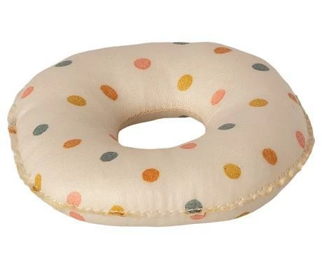 Maileg – float ring Vacation time. A float made in coated fabric for an authentic look. It is not water proof, so only play on dry ground… only in your imagination it can float on water. This set fits mice in size little brother/sister and baby. Product details Item number 11-1402-01 Size : Little sister / Little brother mouse Height : 1,5 cm Age: 3 years & up Washing instruction: 30 degrees Material: Cotton