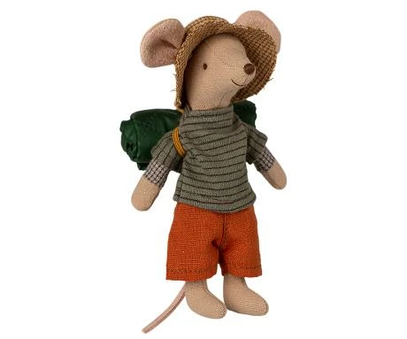 Let’s take a hike with our new friends. Hiker boy will spend days in the wilderness with his sleeping bag, knitted sewater, soft pants and his special hat.