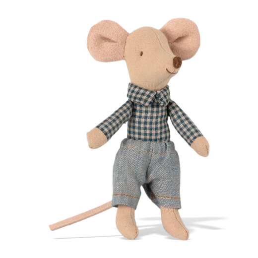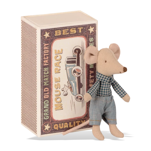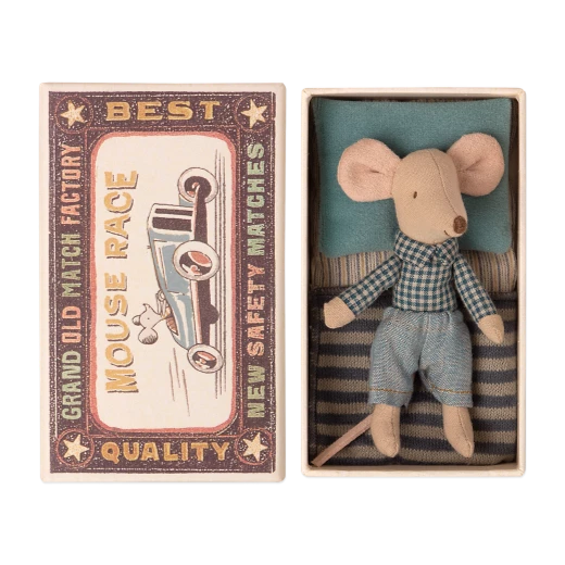 Designed by award-winning Danish company Maileg, Little Brother Mouse has become a popular classic in this charming family of mice. This season, Little Brother Mouse enjoys a smart-casual look with a blue checked shirt and sporty linen trousers. With his own vintage-style matchbox bed for a home, complete with a tiny woolen blanket, mattress and pillow, Little Brother makes a wonderful Scandinavian gift for any little boy or girl who loves imaginative play. Maileg mice are loved for the immaculate detail found in their beautifully crafted creations, for their timeless, nostalgic quality and their collectible appeal.
