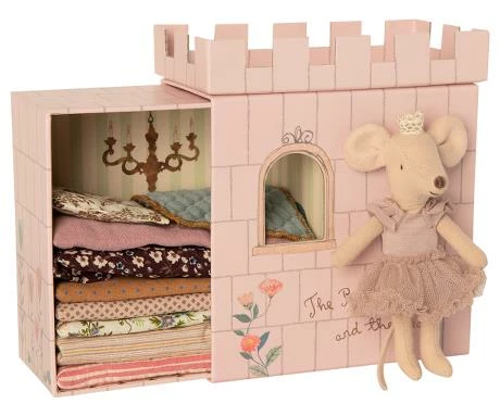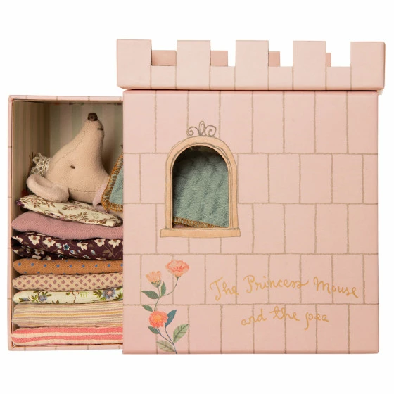 Once upon a time … this is how most good fairy tales begin. This Maileg game was inspired by the famous fairy tale Princess on the Pea. Includes a paper castle with mattresses, a pea and a little princess mouse: the older sister dressed in a beautiful princess dress and a crown. Even if you sleep on a large pile of mattresses, if there is only one small pea between them, you will not be able to close your eyes all night. This set is a beautiful gift idea for a little Maileg fan.
