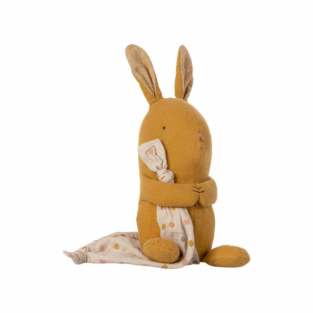 Este conejito tiene un paño suave y toca una canción de cuna tranquila cuando tiras de la cola. Está hecho de telas suaves con un bonito estampado y está empaquetado en una hermosa caja de regalo.