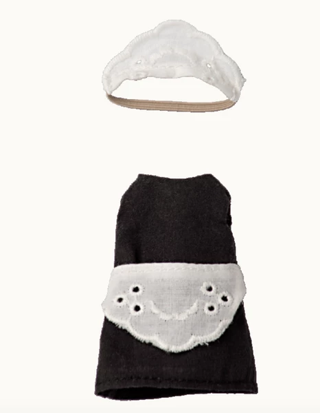 This mouse will for sure be the perfect help in housekeeping. The mouse is classically maid dressed and ready to serve all guests. She has magnets in her hands so it is easier to hold the metal kitchen utensils.