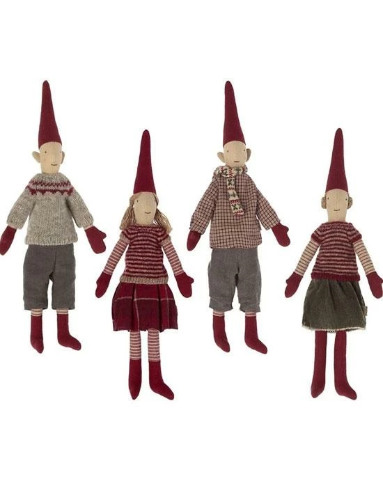 The Maileg Mini Pixy figure is the perfect gift and keepsake for a special little someone. Lovingly crafted from cotton, adorned in a cute festive outfit and just waiting to be friends. Height 31cm Please note: Includes one figure. There are four Pixy Figure designs to choose from -please indicate which doll you would prefer otherwise the figure you receive will be selected at random. About Maileg In a busy world of bright lights, bells and whistles, where new stories are continually impressed upon us… Maileg is a world in which matchboxes can be beds for mice; princesses make perfect teatime companions; and adventures can be found on a friendly forest walk. It is a world where cats and mice are friends. Ours is a world of childhood imagination – and this is a world we value. Maileg (pronounced My’lye) is a brand of charming Danish-designed toys created to inspire our children’s favorite playtime stories. By bringing storybook whimsy to everyday moments, Maileg toys help children explore the pure and simple wonder of imagination. Beloved for their heartwarming personalities, Maileg toys show playfulness and charm in every last detail. Theirs is a timeless world filled with beautiful accessories and settings to be collected, cherished and shared with friends and family for generations.