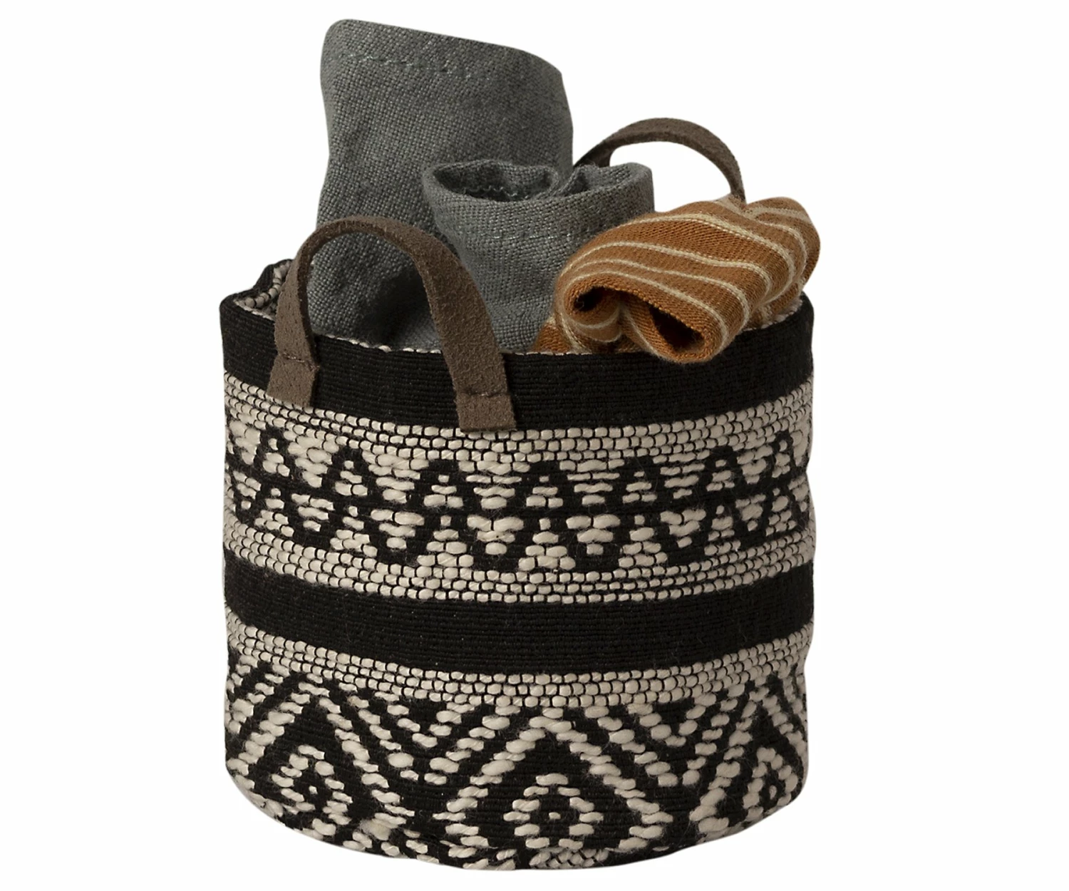 The basket can be used everywhere in the miniature home for storage. The design is fashionable and fits the rest of the Maileg interior articles perfectly. Product details Height : 7 cm Width: 7 cm Age: 3 + years Washing instruction: 30°C Material: Cotton / Polyamide Maileg (pronounced My’lye) is a brand of charming Danish-designed toys created to inspire our children’s favourite playtime stories. By bringing storybook whimsy to everyday moments, Maileg toys help children explore the pure and simple wonder of imagination. Beloved for their heartwarming personalities, Maileg toys show playfulness and charm in every last detail. Theirs is a timeless world filled with beautiful accessories and settings to be collected, cherished and shared with friends and family for generations.