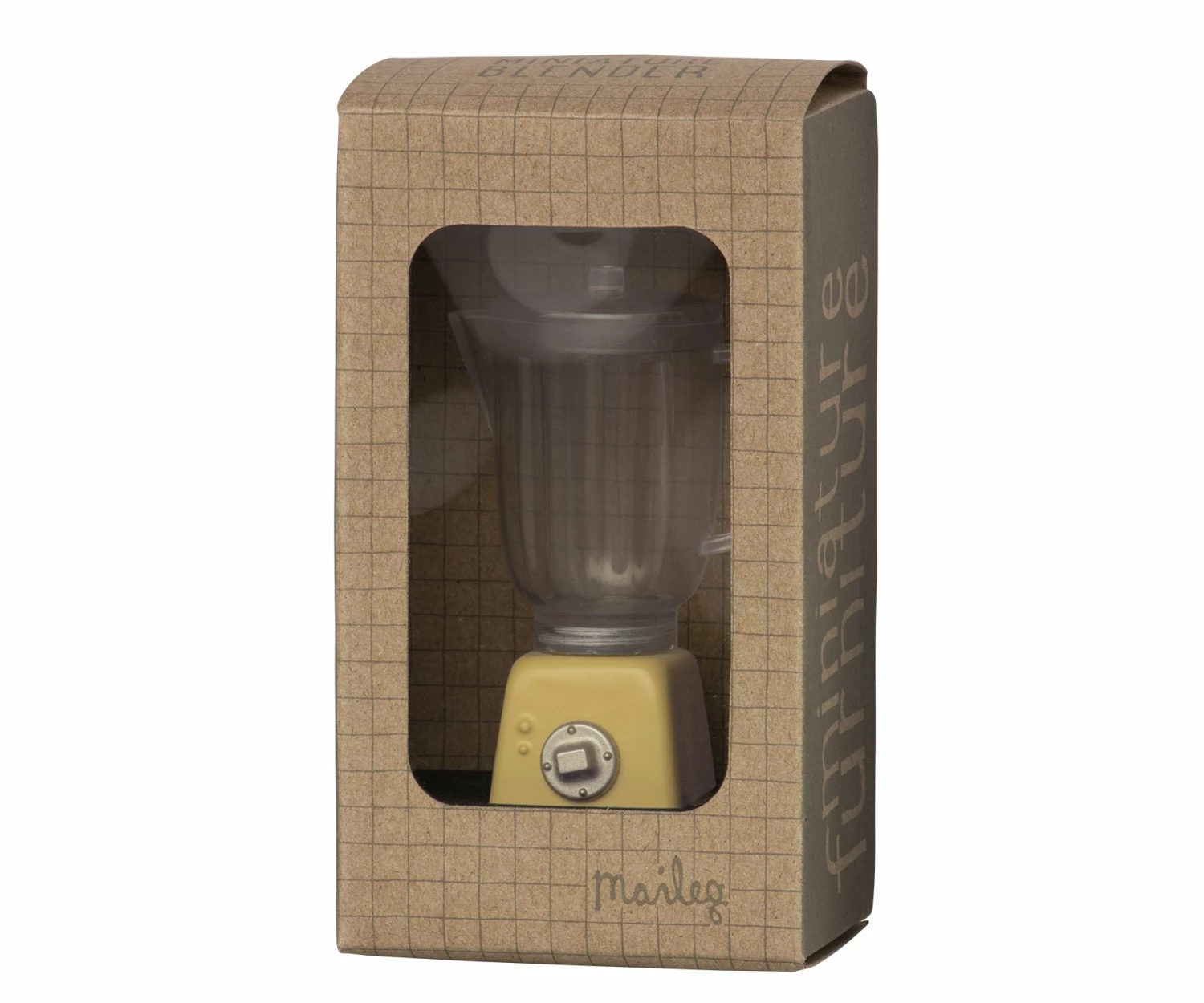 All the small friends also needs a smoothie on the go. The Miniature Blender in yellow is perfect for hours of play. You can take the can of the blender and the lid as well. Product details Height : 9 cmAge: 3 years & upWashing instruction: Surface washMaterial: Metal / Plastic Maileg (pronounced My’lye) is a brand of charming Danish-designed toys created to inspire our children’s favourite playtime stories. By bringing storybook whimsy to everyday moments, Maileg toys help children explore the pure and simple wonder of imagination. Beloved for their heartwarming personalities, Maileg toys show playfulness and charm in every last detail. Theirs is a timeless world filled with beautiful accessories and settings to be collected, cherished and shared with friends and family for generations.