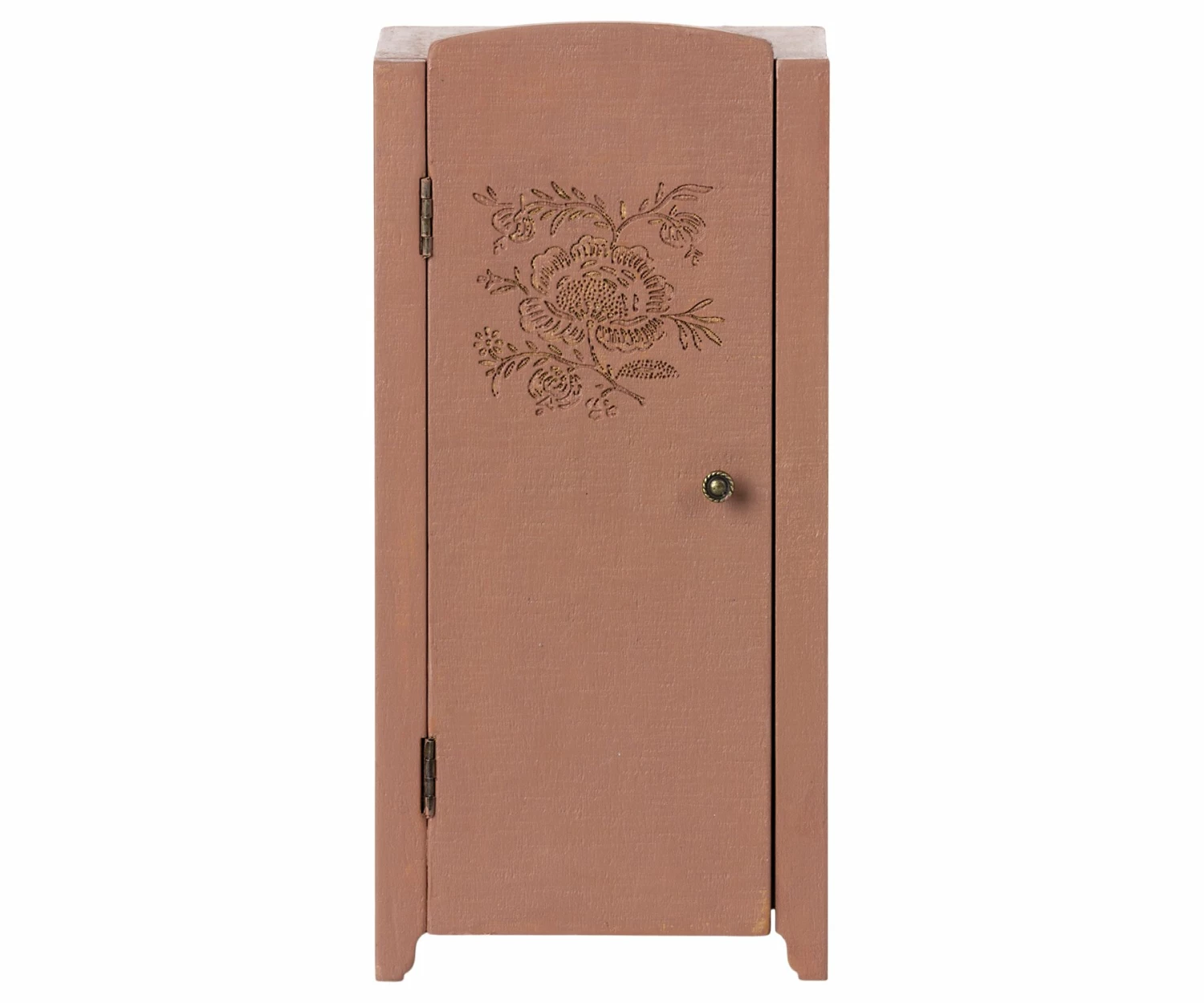 This vintage looking closet has a beautiful embossed flower print on the front and beautiful printed wallpaper inside. The shelves inside will make sure the organizing play will begin. This closet fits into the Maileg dollhouse. Product details Size: Mini Height: 23 cm Width: 11 cm Age: 3 YR + Wash: Surface wash Material: FSC Wood Maileg (pronounced My’lye) is a brand of charming Danish-designed toys created to inspire our children’s favourite playtime stories. By bringing storybook whimsy to everyday moments, Maileg toys help children explore the pure and simple wonder of imagination. Beloved for their heartwarming personalities, Maileg toys show playfulness and charm in every last detail. Theirs is a timeless world filled with beautiful accessories and settings to be collected, cherished and shared with friends and family for generations.