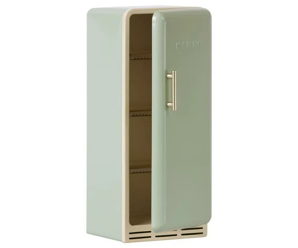 Ein altmodischer Kühlschrank, der perfekt in das Haus des Miniaturpuppenhauses passt. Der Kühlschrank besteht aus Metall mit Magnetverschluss und gefrosteten Regalen im Inneren. Eine großartige Ergänzung zu diesem Kühlschrank ist unsere Miniatur-Lebensmittelbox. Höhe: 22 cm Alter: 3 Jahre und älter Waschen: Oberflächenwäsche Material: Metall