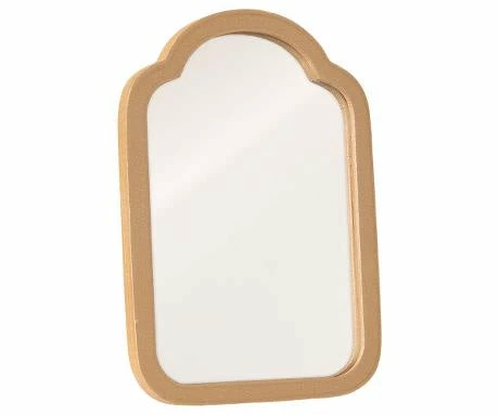 A beautiful golden mirror that fits just perfectly in the Maileg Bathroom & Dollhouse. Height : 3,94 in Washing instruction: SURFACE WASH Material: FSC WOOD.