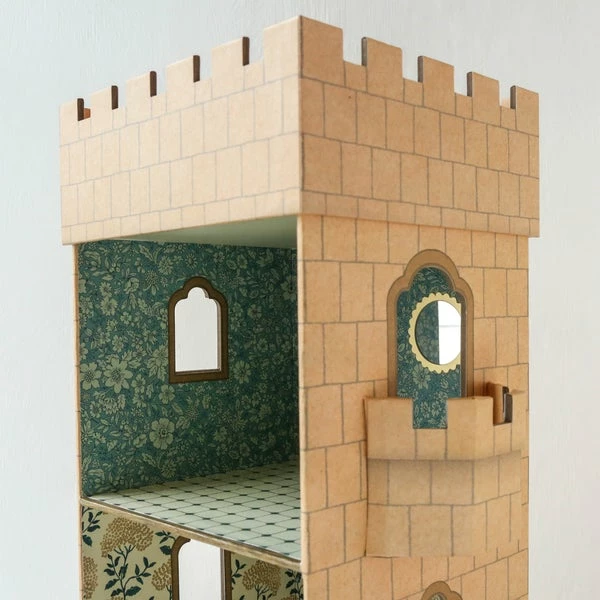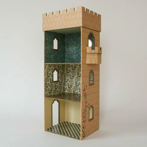 This castle is a beautiful home for all mice. It is made of cardboard covered by unique Maileg prints. Decorate it with your favourite accessories and furniture. Maileg is a brand of charming Danish-designed toys created to inspire our children’s favorite playtime stories. By bringing storybook whimsy to everyday moments, Maileg toys help children explore the pure and simple wonder of imagination. Beloved for their heartwarming personalities, Maileg toys show playfulness and charm in every last detail. Theirs is a timeless world filled with beautiful accessories and settings to be collected, cherished and shared with friends and family for generations. Size: Mouse Height: 62 cm Width: 24 cm Age: 3 YR + Wash: N/A Material: FSC Paper