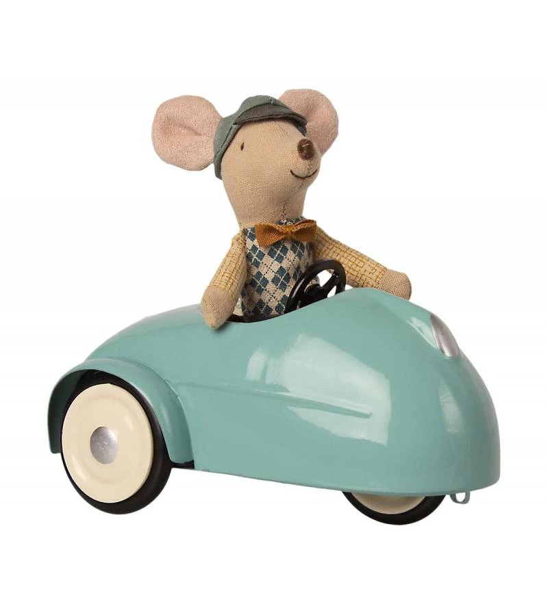 This mouse in his specially designed driver suit. It comes with its blue metal car and wooden garage. It can be the most special toy or a beautiful collector’s item for a lifetime.