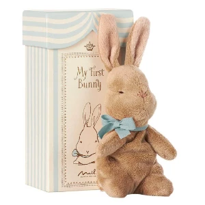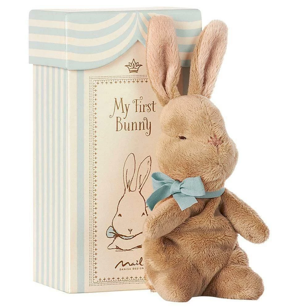 This Maileg My First Bunny is a beautiful bunny in his/her own little box. They wear a smart pink or blue bow and have super-soft fur. The perfect way to start a Maileg family, these bunnies makes a great gift for a new-born or toddler. A keepsake gift that will be cherished throughout childhood. Includes space to write date of birth, name, birth weight and birth height.