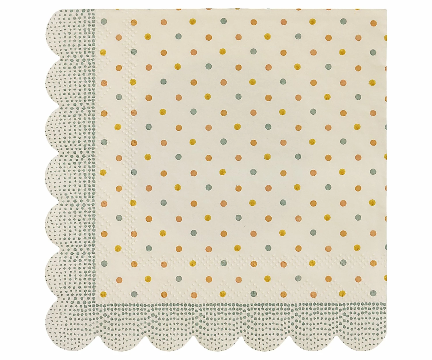 Decorate a beautiful table with these paper napkins made with a colorful dotted print. Mix and match it with ofther Maileg napkins for a personal touch. A pack contains 16 napkins. Product details Size: n/a Height: 12 cm Width: 12 cm Age: Decoration only Wash: n/a Material: FSC Paper Maileg (pronounced My’lye) is a brand of charming Danish-designed toys created to inspire our children’s favourite playtime stories. By bringing storybook whimsy to everyday moments, Maileg toys help children explore the pure and simple wonder of imagination. Beloved for their heartwarming personalities, Maileg toys show playfulness and charm in every last detail. Theirs is a timeless world filled with beautiful accessories and settings to be collected, cherished and shared with friends and family for generations.