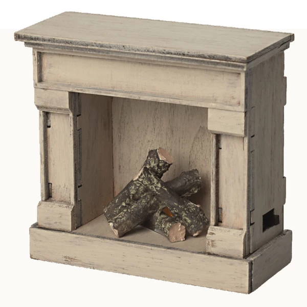 Use this wooden fireplace to warm your miniature home. It has an authentic look and a vintage finish. Remember to turn off the light when your friends go to bed. An adult can change the battery, which is non-rechargeable.