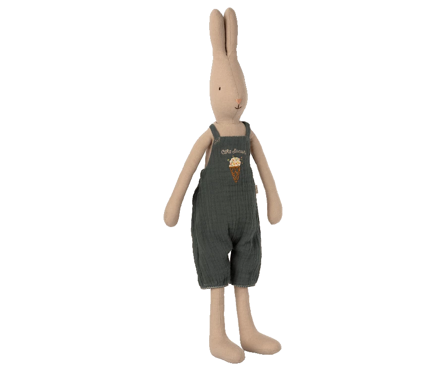A nice pair of overalls made of the softest cotton fabric and with a beautiful embroidery. It fits all bunnies and rabbits in size 3. Product details Size: Bunny/Rabbit 3 Height: 0 cm Age: 3+ Washing instruction: 30°C Material: Cotton Maileg (pronounced My’lye) is a brand of charming Danish-designed toys created to inspire our children’s favourite playtime stories. By bringing storybook whimsy to everyday moments, Maileg toys help children explore the pure and simple wonder of imagination. Beloved for their heartwarming personalities, Maileg toys show playfulness and charm in every last detail. Theirs is a timeless world filled with beautiful accessories and settings to be collected, cherished and shared with friends and family for generations.