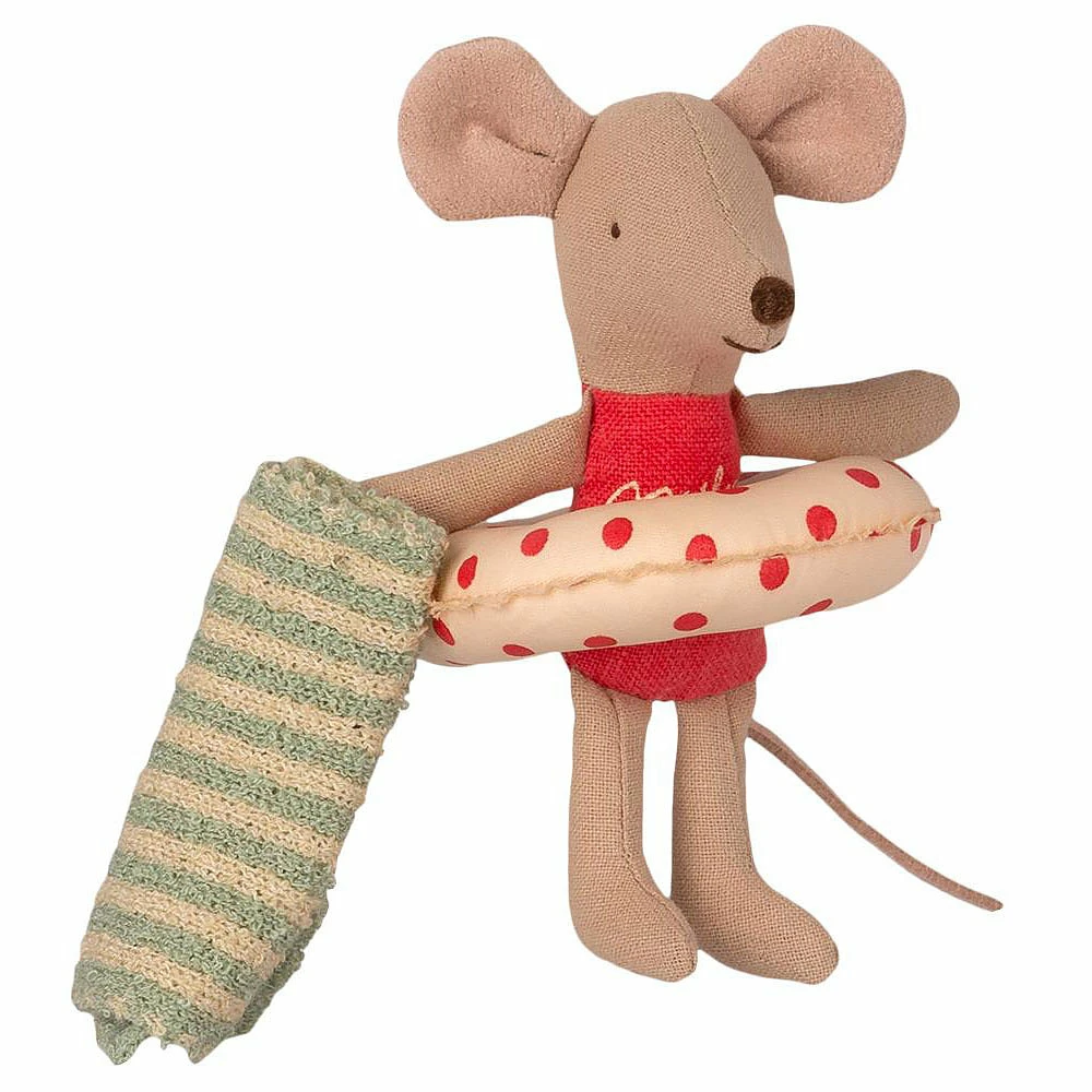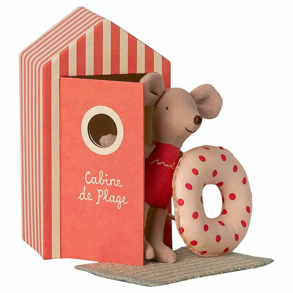 Cette souris est prête pour une journée à la plage, avec tous les accessoires nécessaires et une belle maison de plage à rayures. Comme elle est le plus petit membre de la famille, elle a bien sûr un flotteur pour assurer sa sécurité.