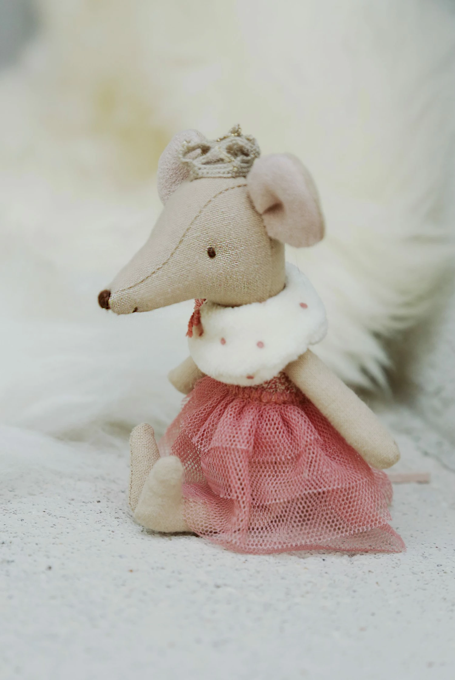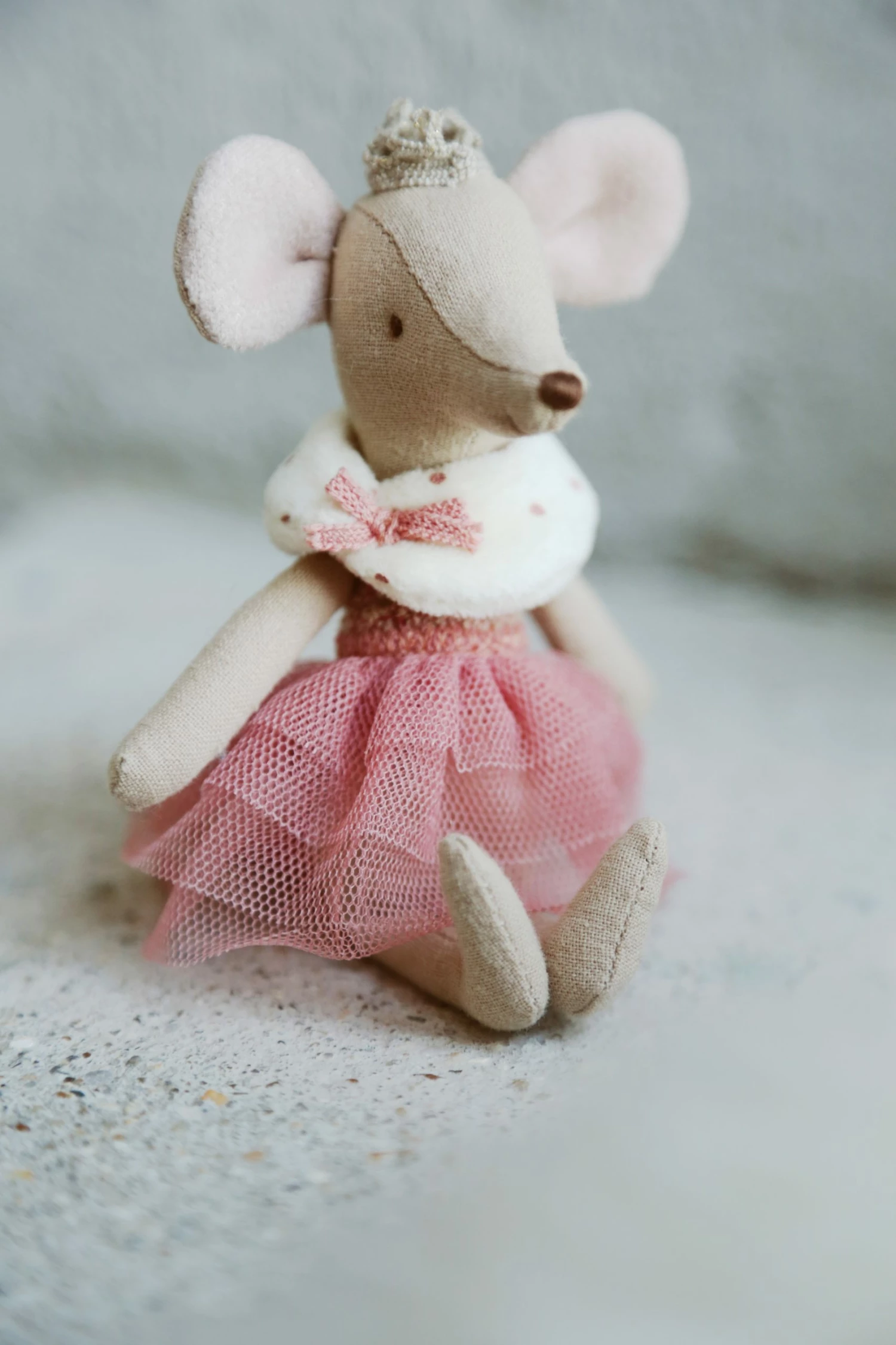 This royal princess mouse big sister is ready for her big debut! She is wearing a gorgeous pink dress with a tutu and gold crown, ready to play and dance around. A unique toy that will be loved and kept, it’s also machine washable to keep her looking her best!