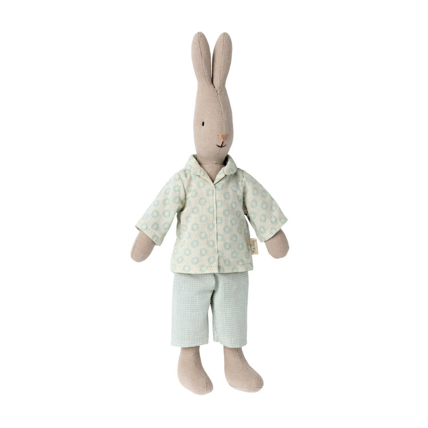 The bunny & rabbit collection is made of soft natural linen & cotton fabric – which gives a lovely hand feel and look. This sweet little rabbit is dressed in the softest pale blue pyjamas and is the perfect Easter gift for a little someone special in your life.
