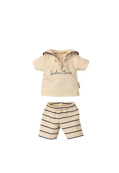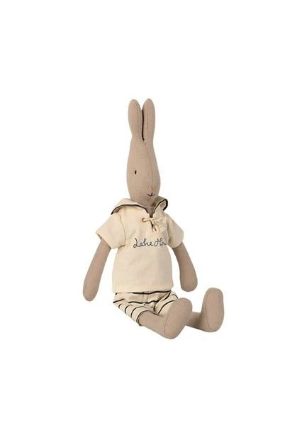RABBIT SIZE 2, SAILOR – OFF-WHITE/PETROL The bunny & rabbit collection is made of soft natural linen & cotton fabric – which gives a lovely handfeel and look. This rabbit is dressed in a playful sailor set. Product details Size : 2 Height : 32 cm Age: All ages Washing instruction: 30 degrees Material: Cotton / Linen
