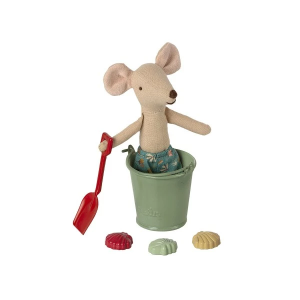 La nueva colección de verano de Maileg es encantadora. Tienen todos los detalles para disfrutar de un maravilloso día de playa. Por eso no podía faltar el cubo metálico con la pala para hacer castillos de arena y conchas de colores.