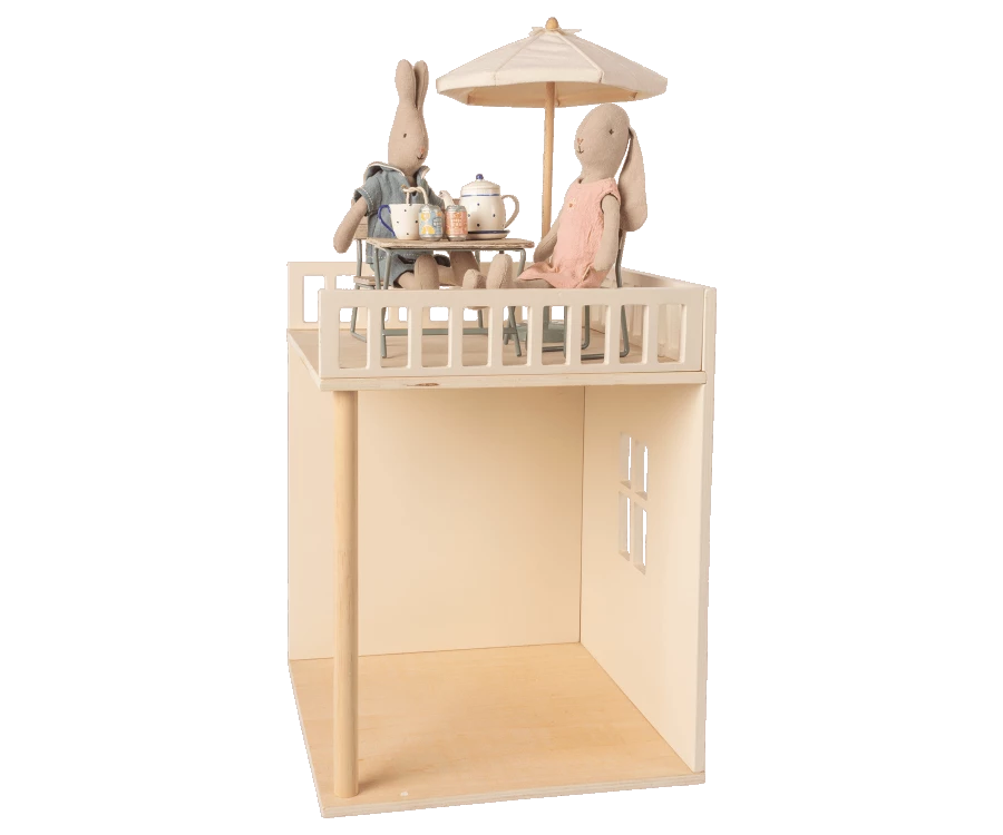 Set giardino per topolini: tavolo con sedie Dettagli: materiale: legno FSC e metallo dimensioni: 9 x 8 cm marca: Maileg