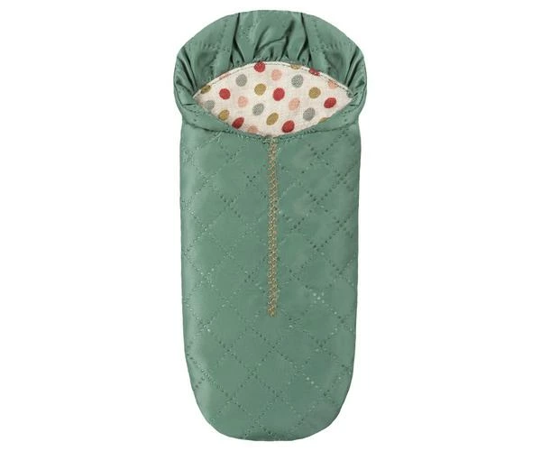 Happy Camper. Snuggle with your Maileg friend and tuck them in at night with their adorable sleeping bag. Item No.: 11-8402-00 Height: 18 cm Width: 7 cm Age: 3 YR + Wash: 30°C Material: Linen/Polyester