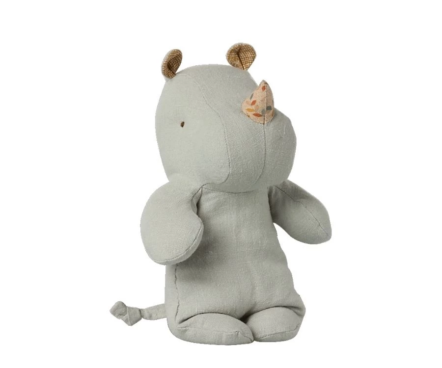 Dieser kleine Kuschelgeselle ist aus feinem weichen Leinen gemacht und man kann nicht anders als ihn zu knuddeln. Rhino ist Teil der Safari Friends-Serie von Maileg. Der sanfte Blauton erfreut das Auge. Ohren und Horn setzen mit bunten Stoffen einen schönen Akzent. Das Hinterteil ist beschwert und so kann er sich ganz gut niederlassen obwohl es sehr unwahrscheinlich ist dass du ihn weglegen möchtest. Höhe: ca. 22 cm Material: Leinen mit Füllung aus recyceltem Polyester und Granulat Farbe: Taubenblau. Geeignet ab 0 Jahren.
