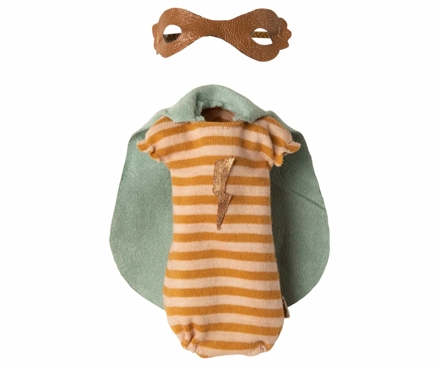 The popular Maileg Girl Mouse in medium size, dressed as a superhero. Ready to fly out and help in any situation. Product details Size : MediumHeight : 31 cmAge: All agesWashing instruction: 30 degreesMaterial: Cotton/Polyester/PU Maileg (pronounced My’lye) is a brand of charming Danish-designed toys created to inspire our children’s favourite playtime stories. By bringing storybook whimsy to everyday moments, Maileg toys help children explore the pure and simple wonder of imagination. Beloved for their heartwarming personalities, Maileg toys show playfulness and charm in every last detail. Theirs is a timeless world filled with beautiful accessories and settings to be collected, cherished and shared with friends and family for generations.