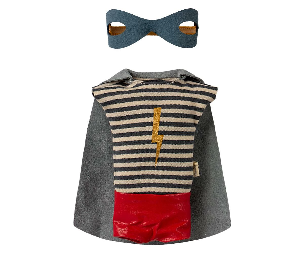Super Hero Mouse, Medium-Boy Die beliebte Maileg-Maus als Superheld verkleidet. Bereit zu fliegen und in jeder Situation zu helfen. Größe: Medium Höhe: 31 cm Alter: Alle Altersgruppen Waschen: 30 Grad Material: Baumwolle / Polyester / VE