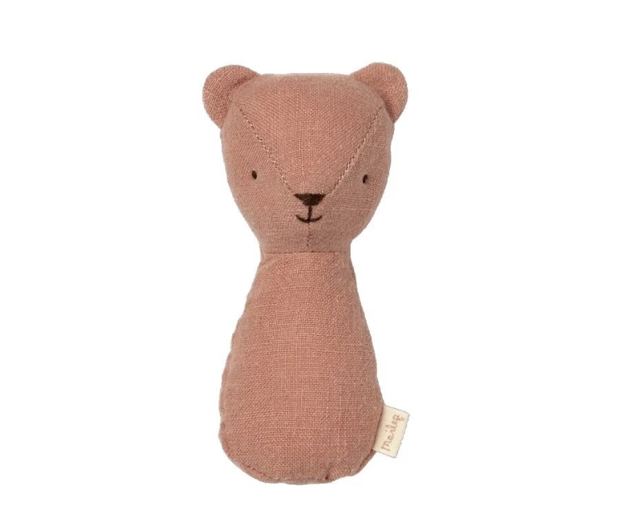 Für kleine Babyhände ist dieser Mini Teddy gemacht. Es macht jede Menge Spaß den kleinen Kerl zu schütteln und den Geräuschen der eingebauten Rassel zu lauschen. Die liebe Teddy Rassel ist für alle Altersgruppen geeignet und somit schon ein passendes Geschenk für Neugeborene. Abmessung: H 11cm Material: Leinen Füllung: recyceltes Polyester Granulat Farbe: Altrosa