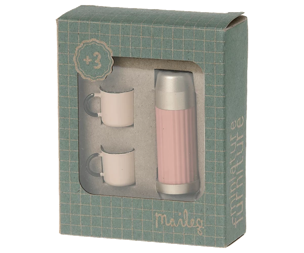 When the Maileg friends go out for a hike or field trip it is necessary to bring tea. This small set is made with the finest details that make the product very authentic. You can screw the lid off and the play can start. Height: 6cm Width: 4cm Wash: Surface Wash Materials: Metal Age: 3+