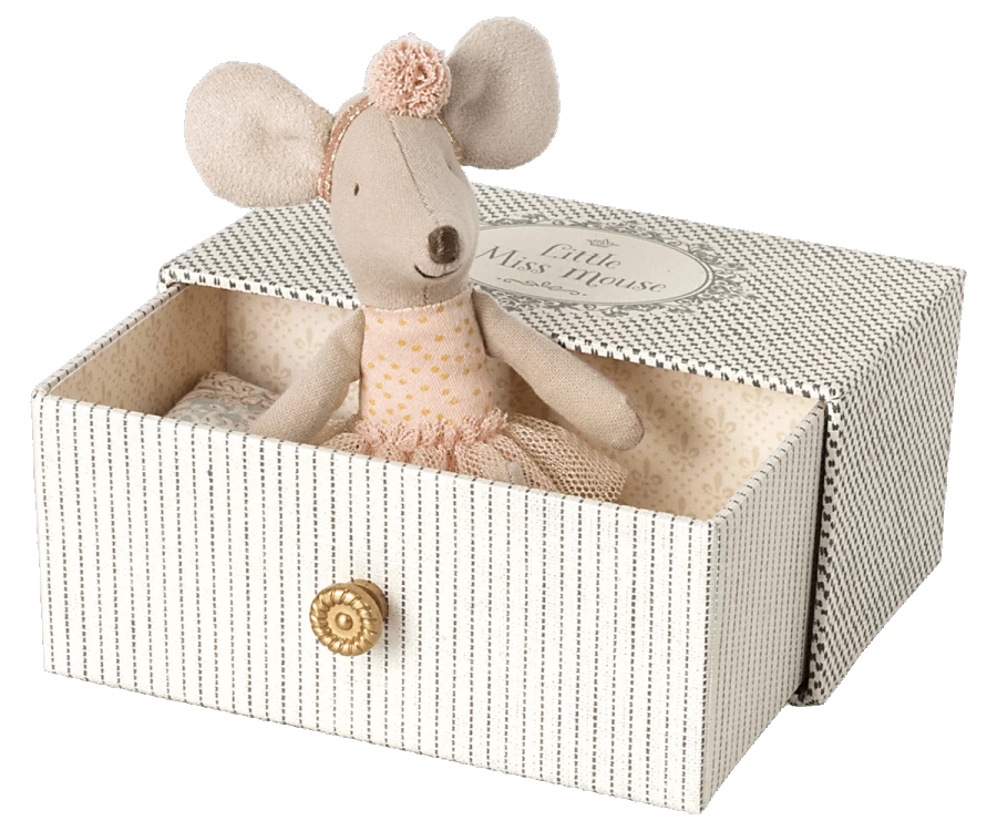 Topolina ballerina sorella minore con lettino nel cassetto Dettagli: materiale: cotone e lino dimensioni: 11 cm marca: Maileg