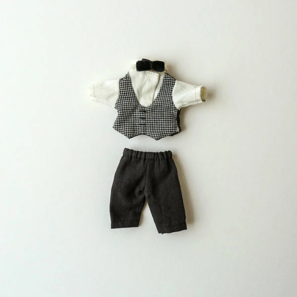 A classic set of clothes for a waiter including a shirt with vest, a bow and a pair of pants. This set fits all mice in size of big brother and sister perfectly. Maileg is a brand of charming Danish-designed toys created to inspire our children’s favorite playtime stories. By bringing storybook whimsy to everyday moments, Maileg toys help children explore the pure and simple wonder of imagination. Beloved for their heartwarming personalities, Maileg toys show playfulness and charm in every last detail. Theirs is a timeless world filled with beautiful accessories and settings to be collected, cherished and shared with friends and family for generations. Size: Big sister/ brother Height: 9 cm Age: 3 YR + Wash: 30°C Material: Cotton Filling: –